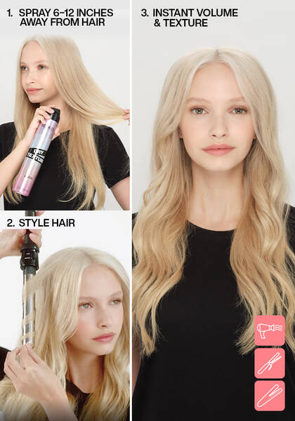 • To add texture and volume, tousle hair after spraying.
