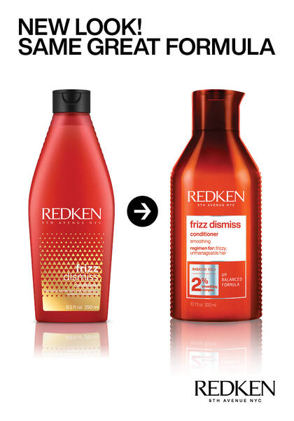 Frizz Dismiss is a collection of haircare products and treatments providing humidity protection and smoothing benefits for all hair types. The collection features Redken's Smoothing Complex infused with sustainably-sourced Babassu Oil to tame flyaways and decrease puffiness while increasing manageability and shine. The formulas feature a warm beachy fragrance with notes of vanilla, jasmine, pear and citrus for an invigorating experience with every use.