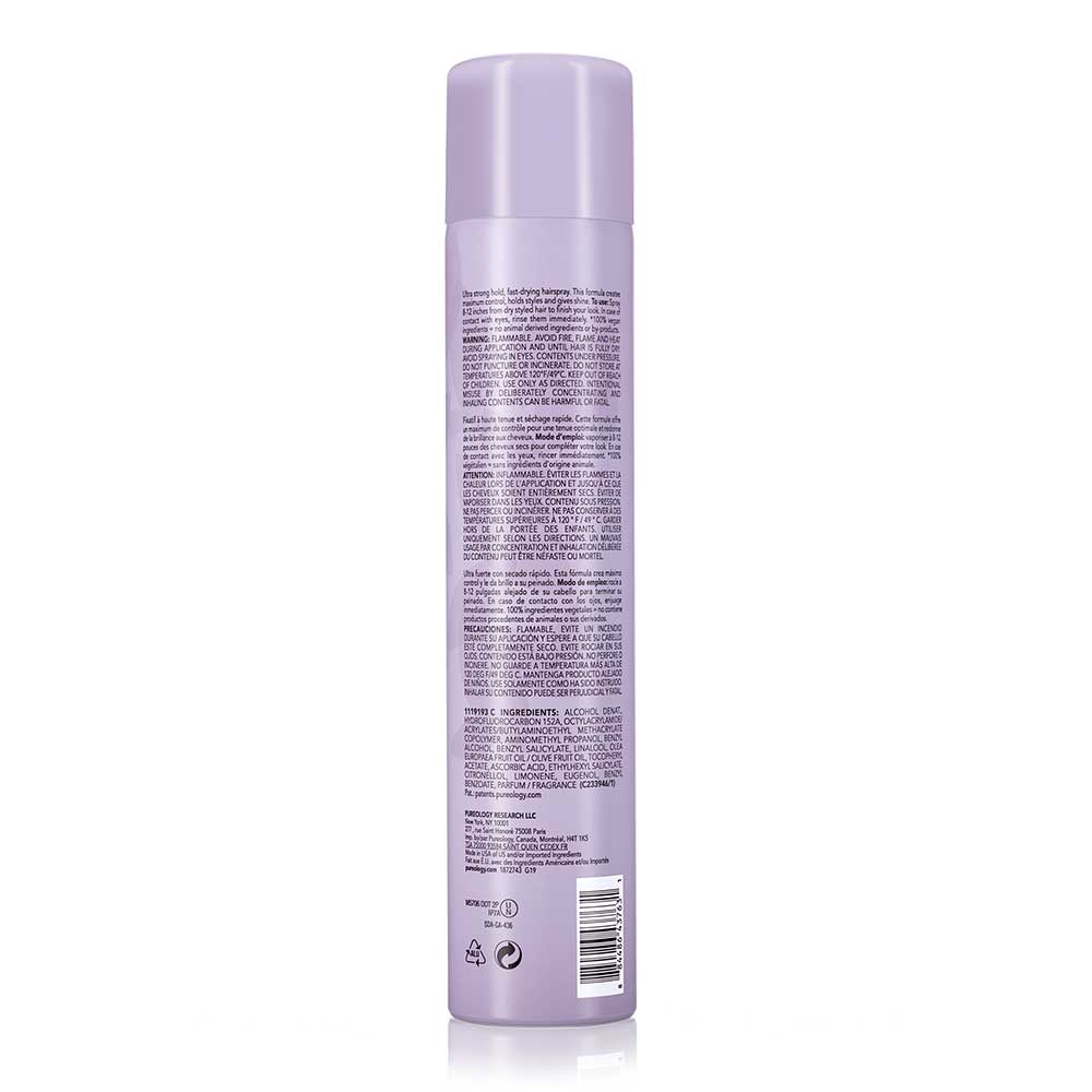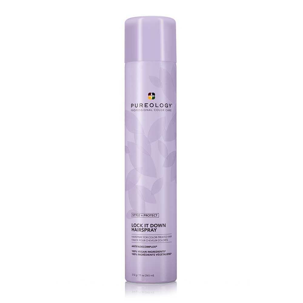 Pureology Lock It Down Hairspray provides fast-drying, maximum hold, and radiant shine to color-treated hair with key ingredient Olive Oil and a signature aromatherapy blend of Tuberose, Almond Milk, and Cedarwood.