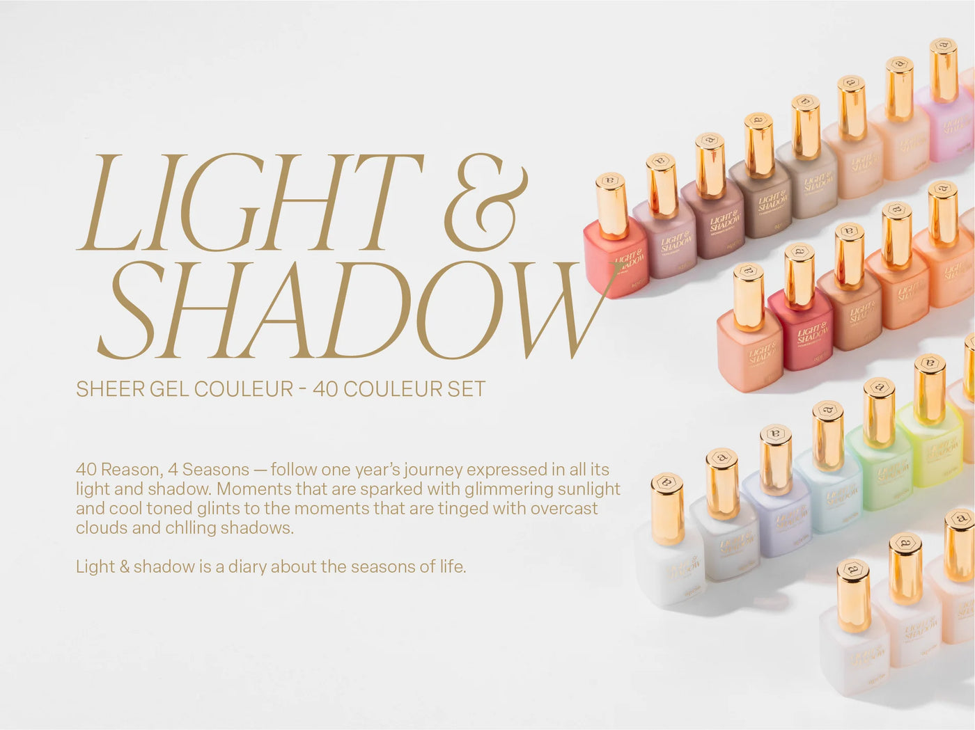 Light & Shadow Sheer Gel Couleur is a HEMA and cruelty free, vegan formula that is a sheer, buildable gel color. Light & Shadow Sheer Gel Couleur also provides the perfect tool along with the perfect color—our revolutionary in-bottle Brush-X, a game changing tool for even and precise application.