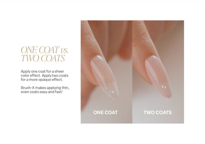 After prepping the natural nail and applying Base Gel coat, apply a layer of Light & Shadow Sheer Gel Couleur then cure for 30 sec LED. Follow with an optional second coat for a more opaque finish, curing for 30 sec LED. Finish with the Après Non-Wipe Top Gelcoat. When applying on Gel-X Tips, NO base coat is needed.