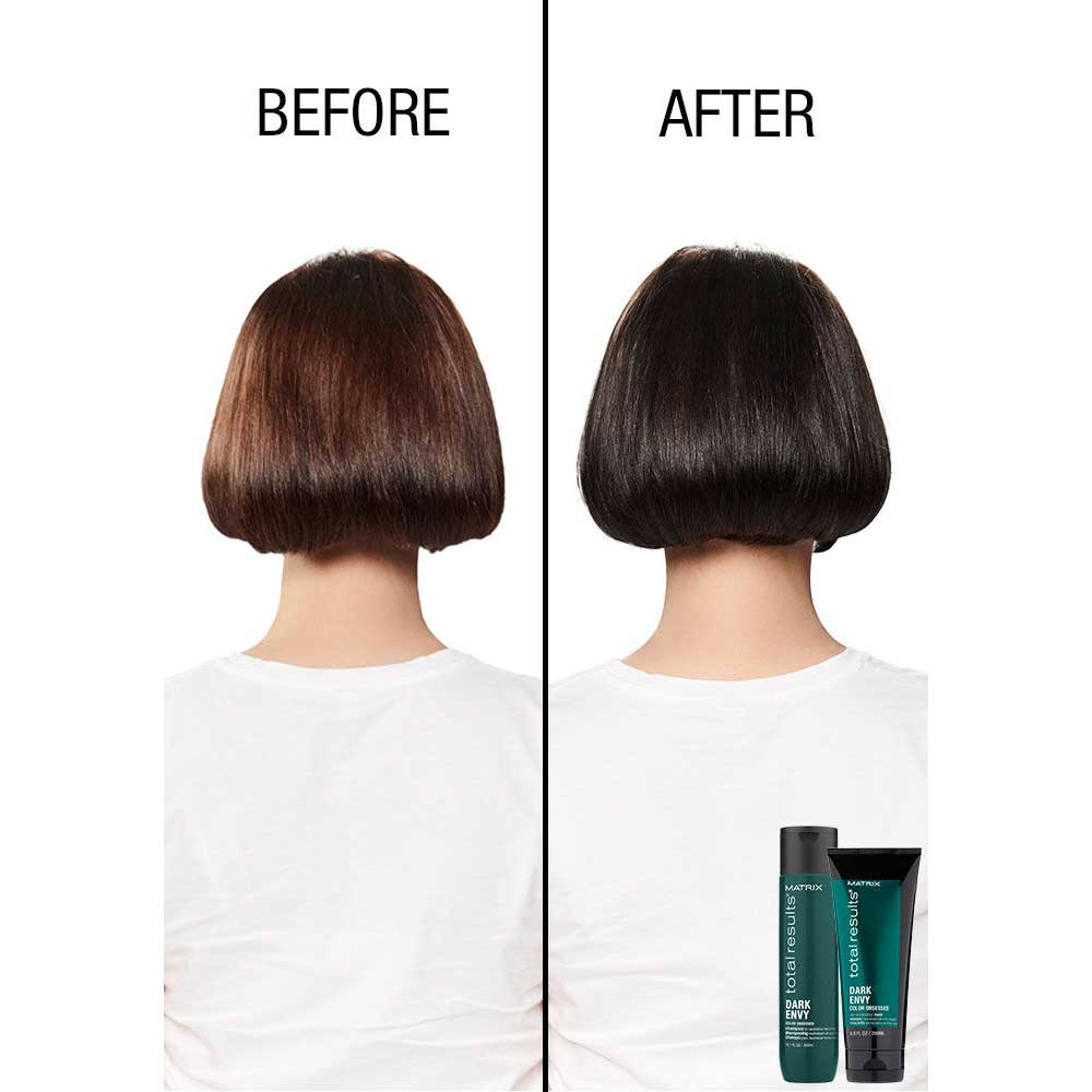 Dark Envy Red Neutralization Hair Mask has a complex concentration of blue-green direct dyes to neutralize red undertones on dark brunette bases while deeply nourishing the hair fiber and leaving a radiant sheen.